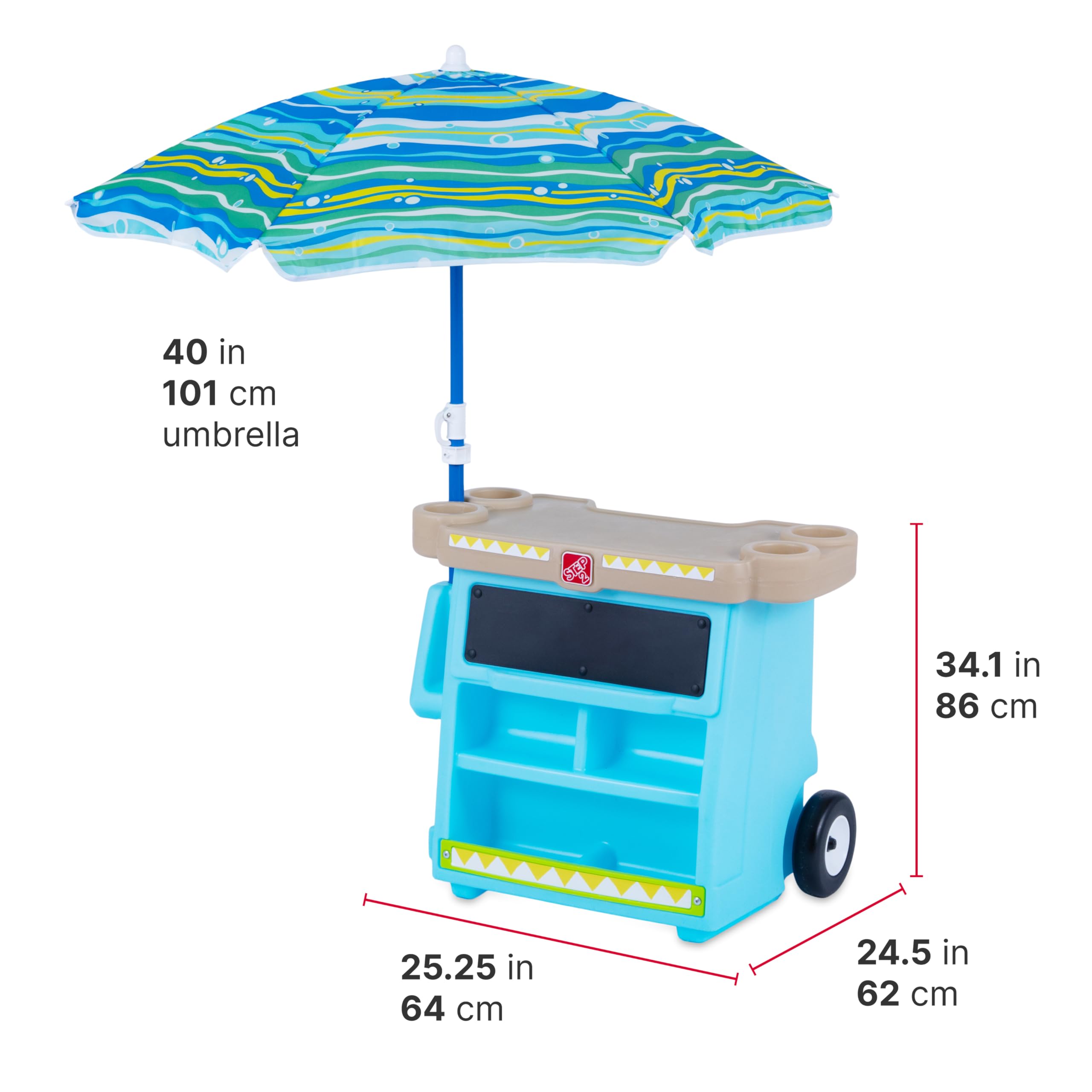 - EASY MOBILITY: Equipped with two sturdy wheels and a push handle for effortless setup and movement, and a 40" collapsible umbrella that attaches to the cart allowing your little one to set up their lemonade stand wherever they desire