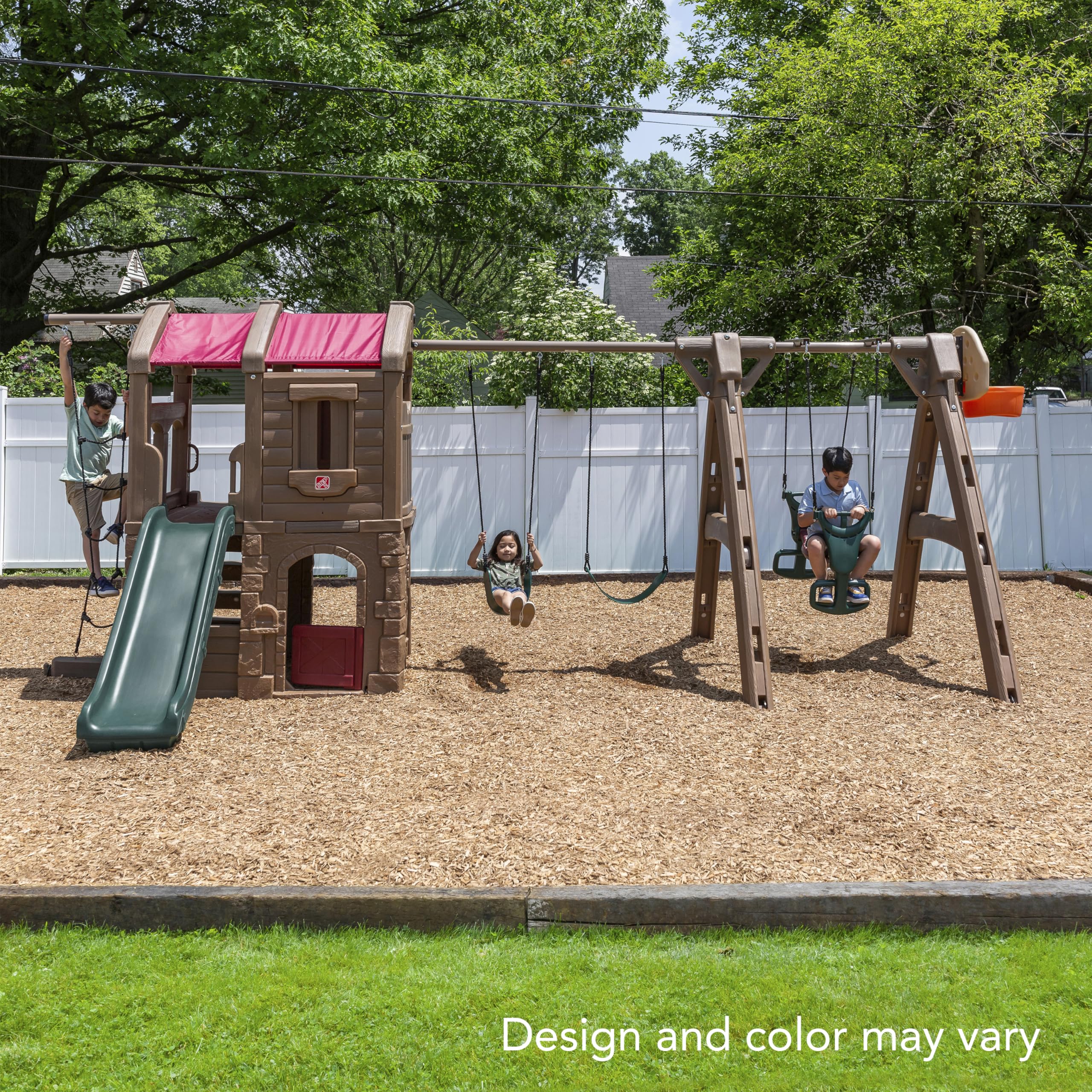 - FUN PLAYTIME: Brings excitement of the park playground to the backyard, two-level clubhouse, play area, slide, ladder, swings, glider, rope ladder, basketball hoop, encourage active play with multiple kids