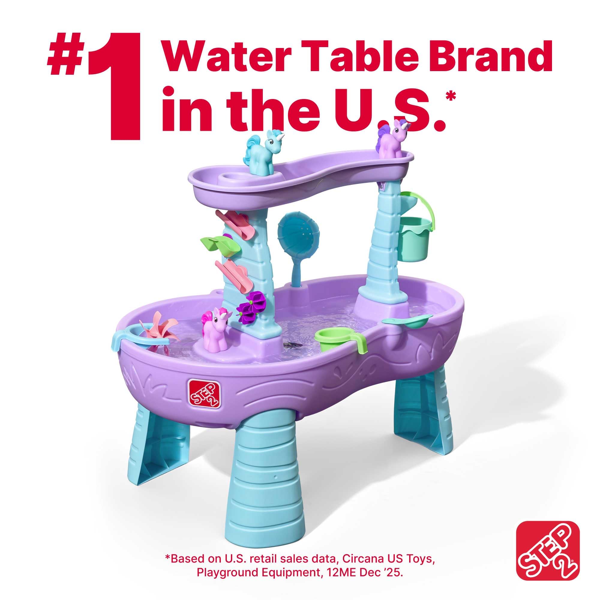 Step2 Rain Showers and Unicorns Water Table, Kids Water and Sand Activity Sensory Playset, Summer Outdoor Toys, 13 Piece Water Toy Accessories, for Toddlers 1.5+ Years Old, Blue & Purple—
