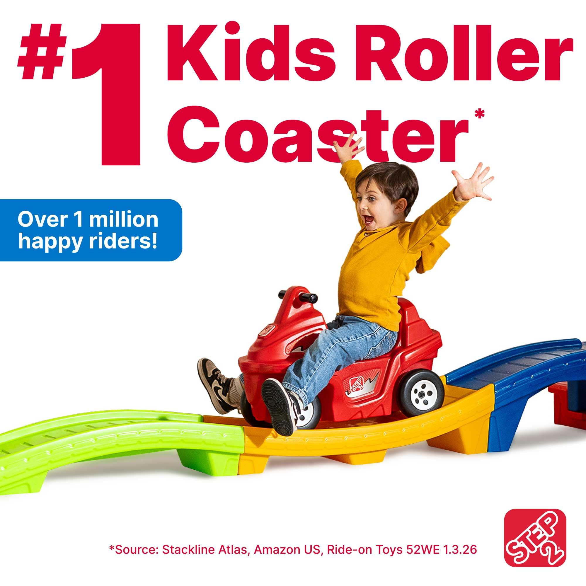 Step2 Up & Down Roller Coaster Kids Ride On Toy, Push Car, Indoor/Outdoor Playset, Made of Durable Plastic, Max Weight 50 lbs., For Toddlers 2-5 Years Old, Multicolor